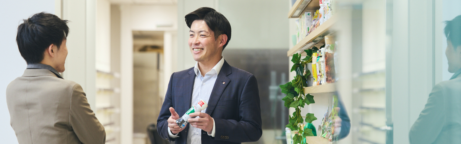 自ら提案した商品の売り場を直接見られるのが、この仕事の醍醐味です。「リケンのノンオイル」をはじめとした各種プロモーションもそうですし、スーパーなどの陳列棚でも実際に目にすることができます。家族や友人から「買ったよ」「美味しいね」と言ってもらえたときも、誇らしい気持ちになりますね。同時に、当社の製品をより一層多くの人に届けたいとの思いも強くなります。理研ビタミンの営業チームの強みは、商品力はもとより、「人間力」と「提案力」です。身近な人に当社の商品を届けられるこの仕事に、大きなやりがいを感じています。