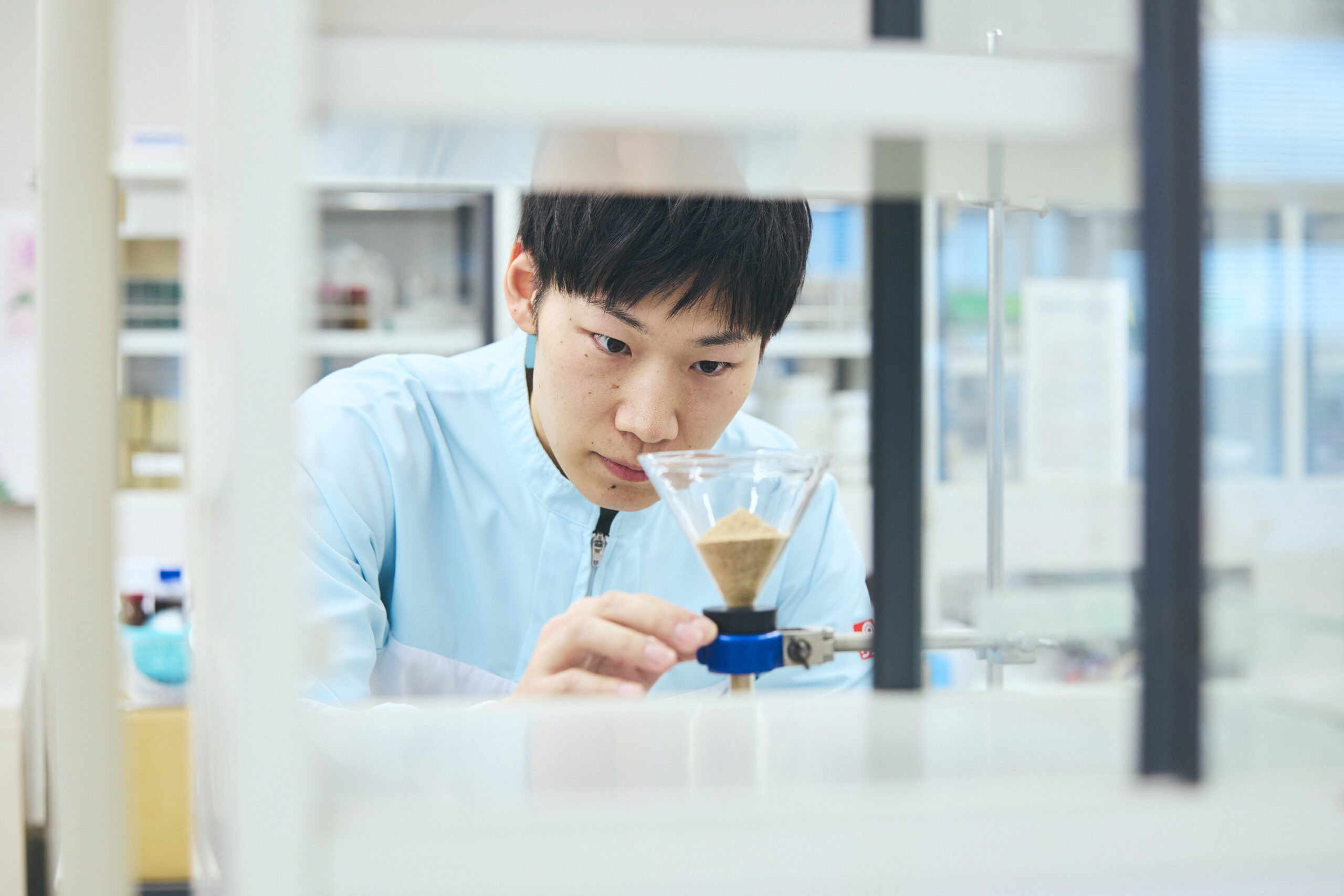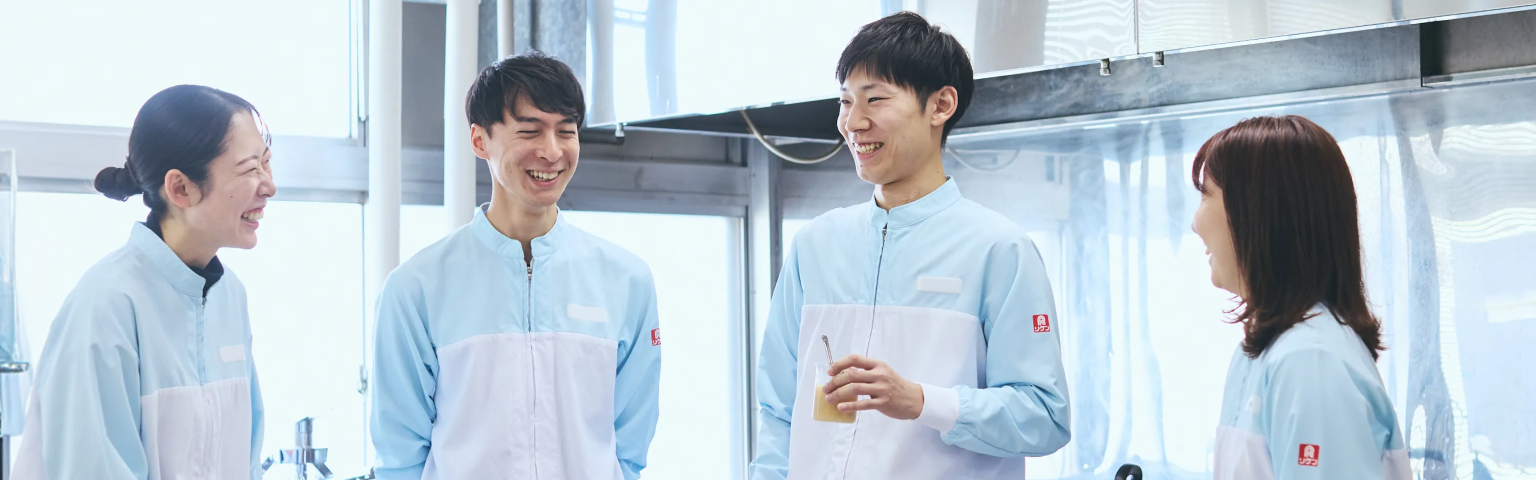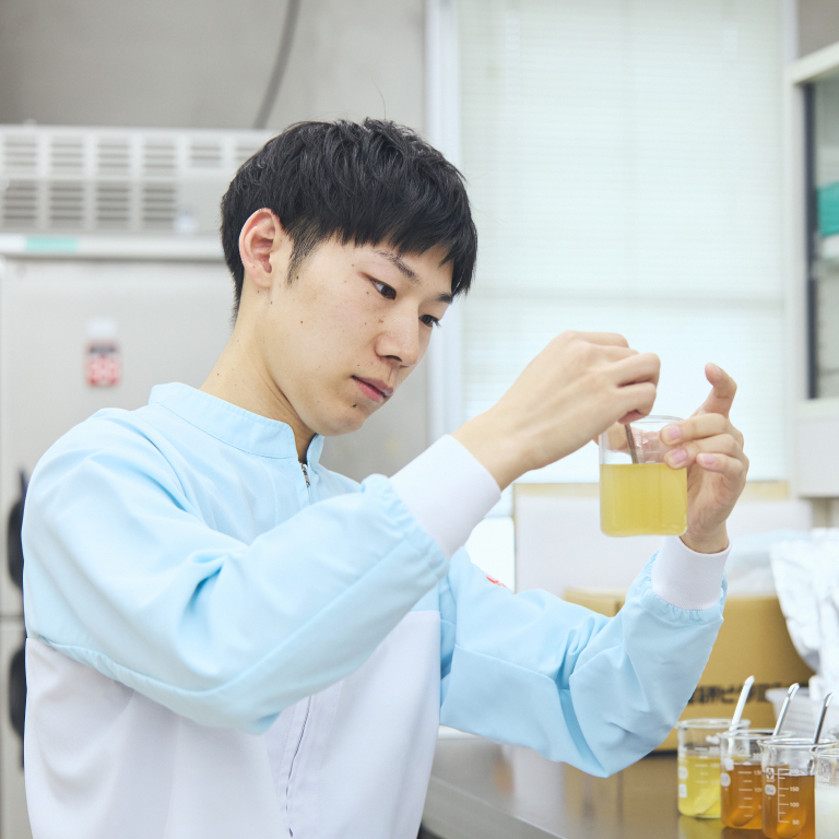 大学院で海洋資源環境学を専攻し、未利用資源の活用について研究していました。就職活動中に出会った、理研ビタミンの企業理念「天然物の有効利用を図る」が、大学院での研究テーマと深く合致し、大きな共感を覚えました。また、食品メーカーでありながら、乳化剤などの食品改良剤や化成品原料、ヘルスケア、海外事業など幅広い領域へ挑戦している点にも魅力を感じました。一つの素材がさまざまな商品へと姿を変え、人々に美味しさや幸せを届けていることが、入社の決め手となりました。