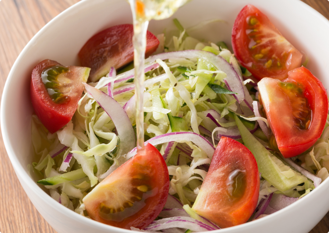 当社のノンオイルドレッシングのはじまりは、1986年に発売された「生海草サラダ(ノンオイルドレッシング青じそ付き)」です。生海草サラダもさることながら、「ドレッシングだけでもぜひ欲しい」というお客様の声にお応えし、1989年に「ノンオイルスーパードレッシング青じそ(当時)」を発売しました。おいしさとノンオイルならではの汎用性が支持され、現在では多様なラインアップをそろえています。
